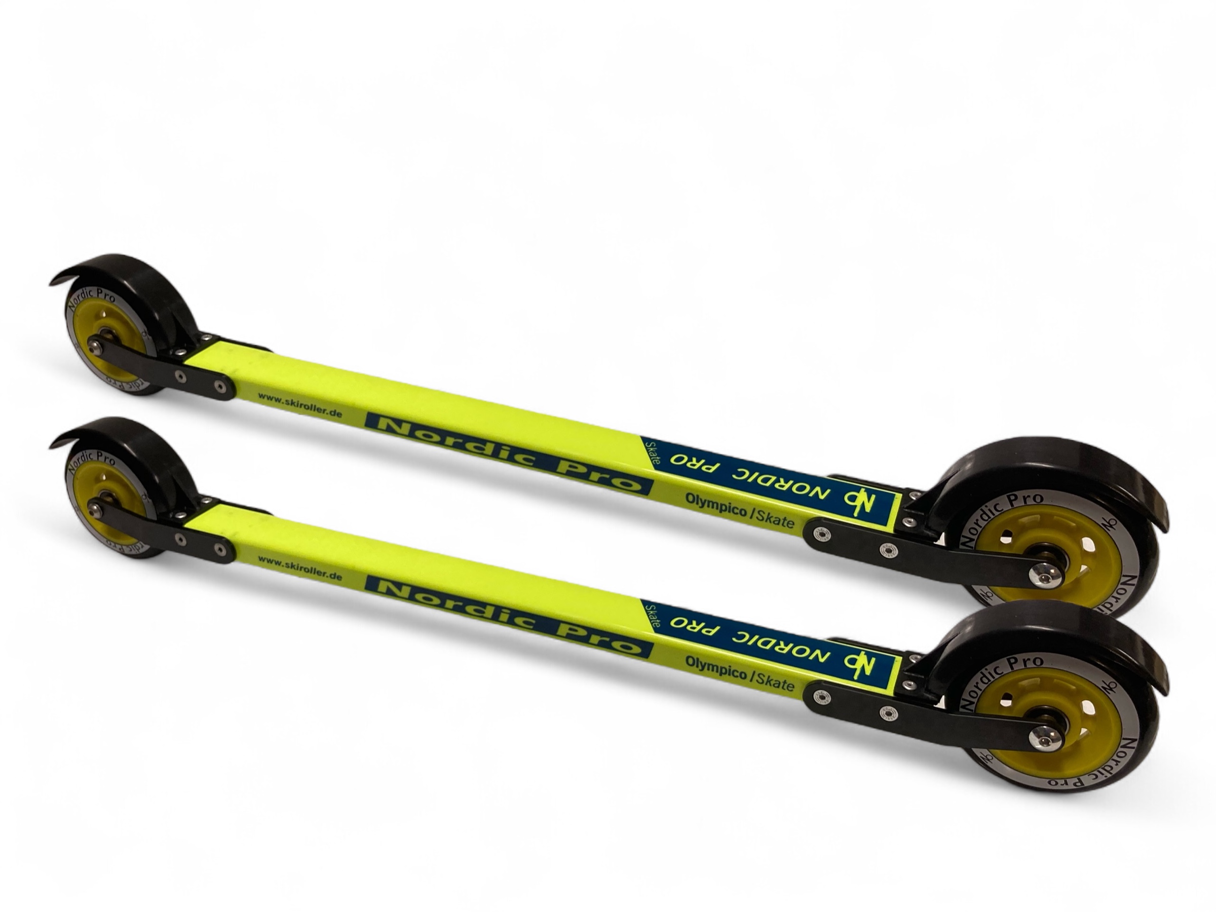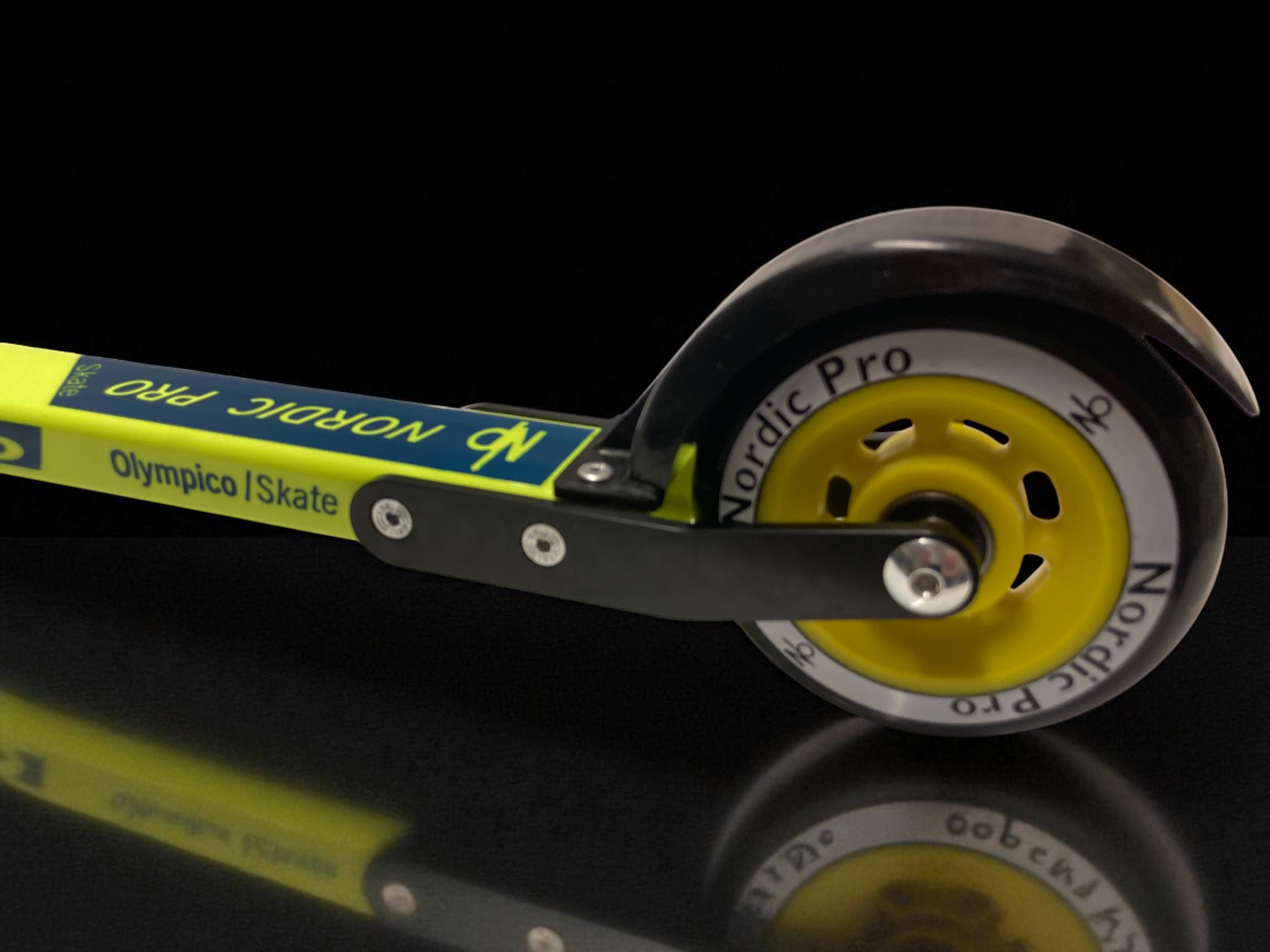 Der Olymppico Skating Skiroller ist mit einer der stabilsten Skiroller auf dem Weltmarkt, durch seine hochfeste Legierung ist er nachhaltig, langlebig, hat sehr gute Führungseigenschaften und läuft sich sicher und komfortabel auf allen Asphalt Strecken. Der Skiroller ist durch die tiefergelegten Gabeln sehr kippstabil und hat einen niedrigeren Schwerpunkt. Sehr gute Führungseigenschaften in der Ebene, bei Anstiegen und bei Abfahrten. Den Skiroller gibt es in drei verschiedene Geschwindigkeiten, schnell, langsam und sehr langsam, sowie in drei verschiedene Räderarten; Gummi Standard Laufleistung < 1800 Km, PU Räder Laufleistung < 2200 Km und mit besseren Nässe Grip und Marathon Räder mit einer Laufleistung < 5000 Km und sehr gute Nässe Haftung.
