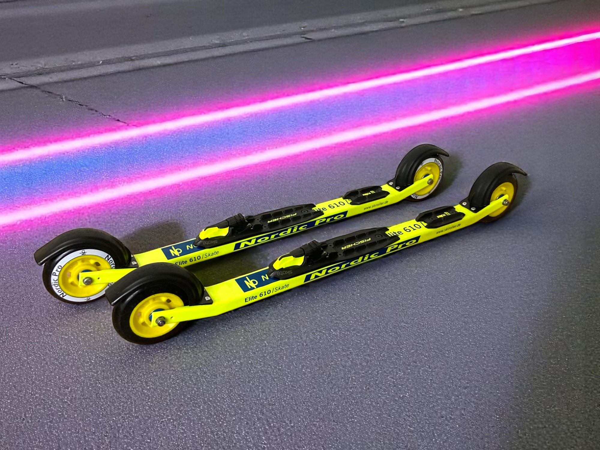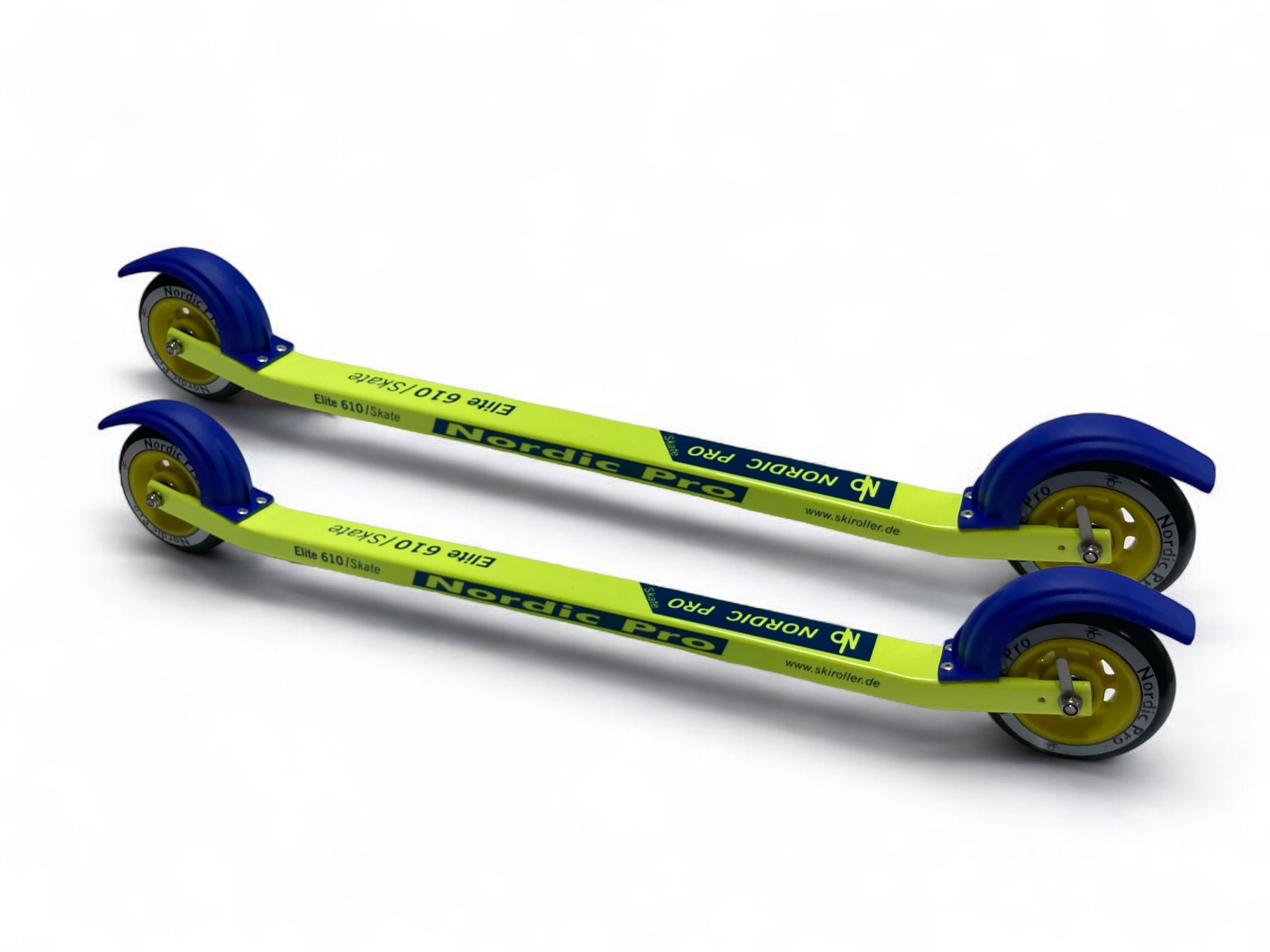 Eine Besonderheit bei Nordic Pro Skiroller ist, dass man die Spur an einem Spureinstellhaben genau einstellen kann, damit die Skiroller genau geradeaus laufen.   Der Skiroller ist Pulverbeschichtet (Farben sind erhältlich in: blau / gelb und pink/schwarz.)